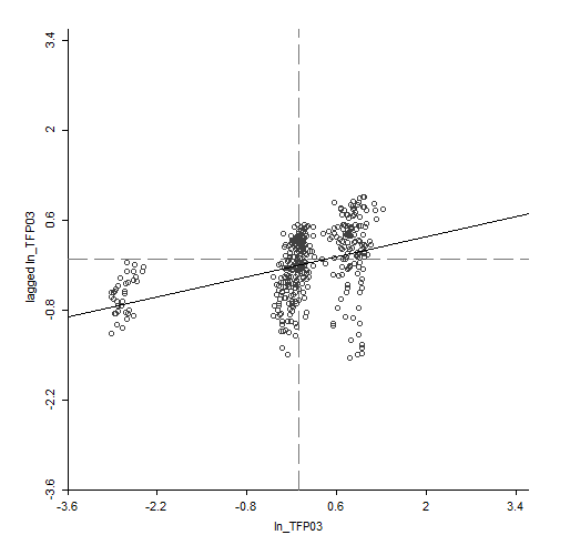 - Figure 5. Moran scatterplot of ln(TFP) in 2003