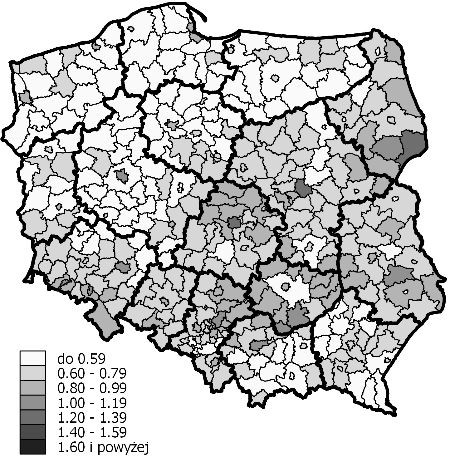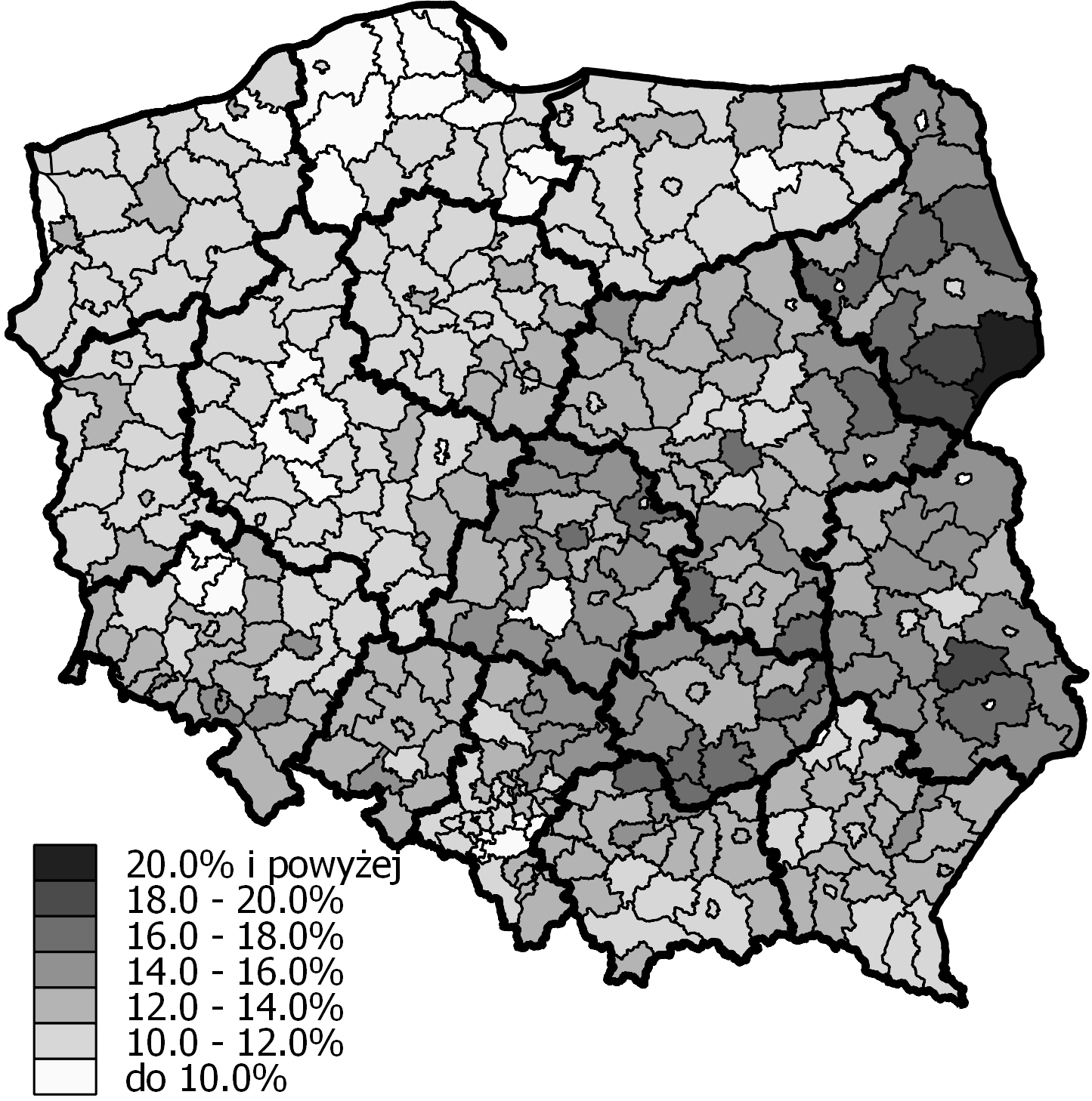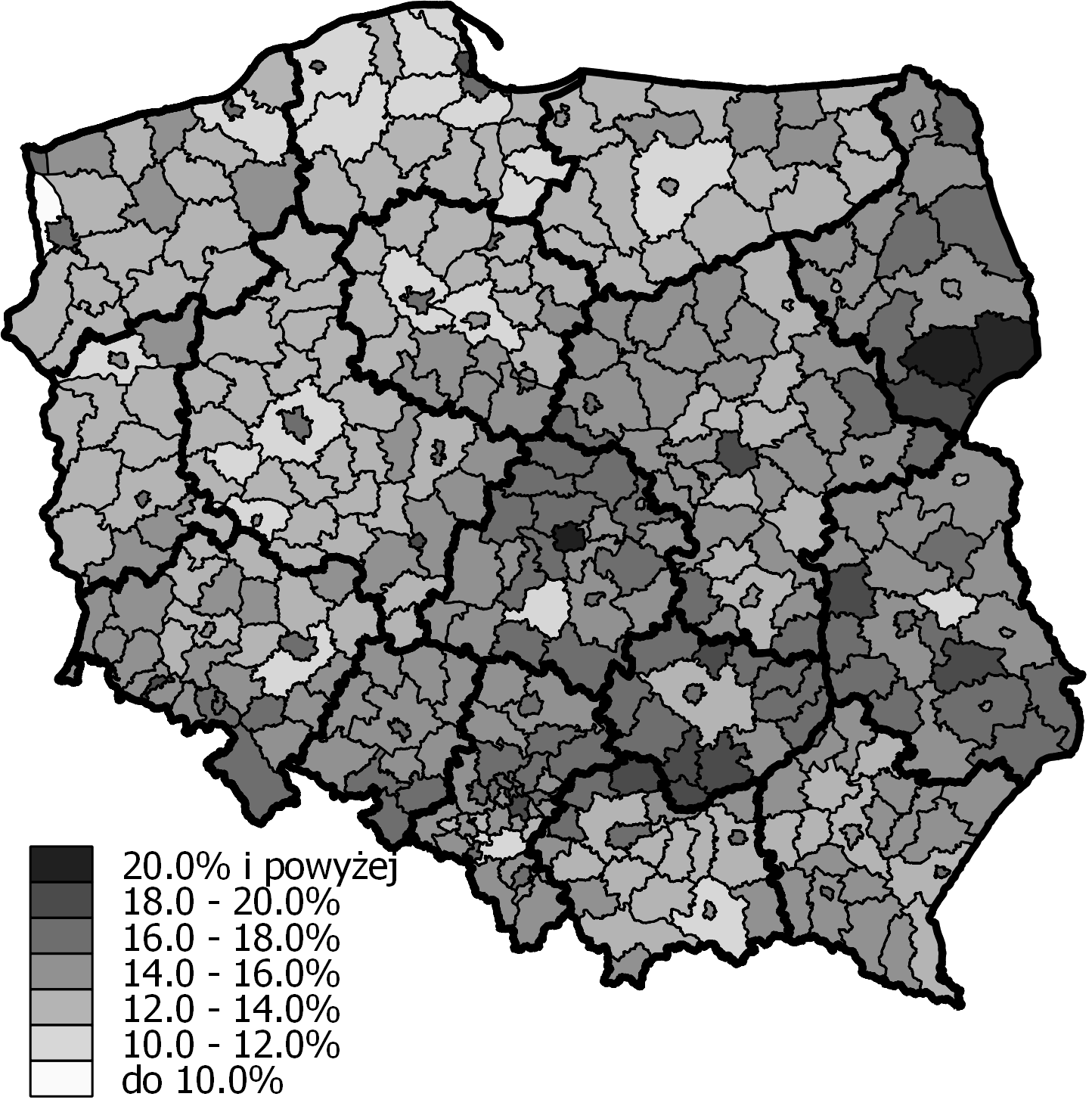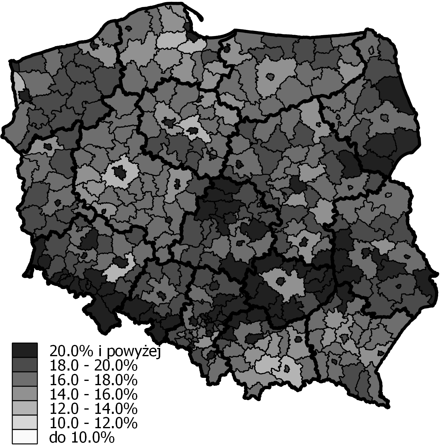 - Ryc. 5 Percentage of people aged 65 and over in poviats in 2014 (Język polski)