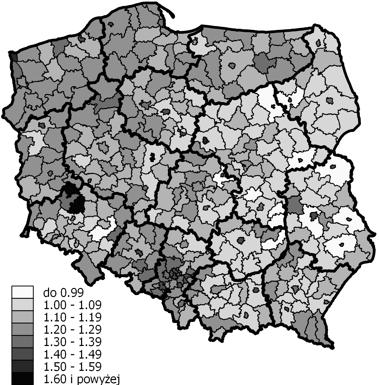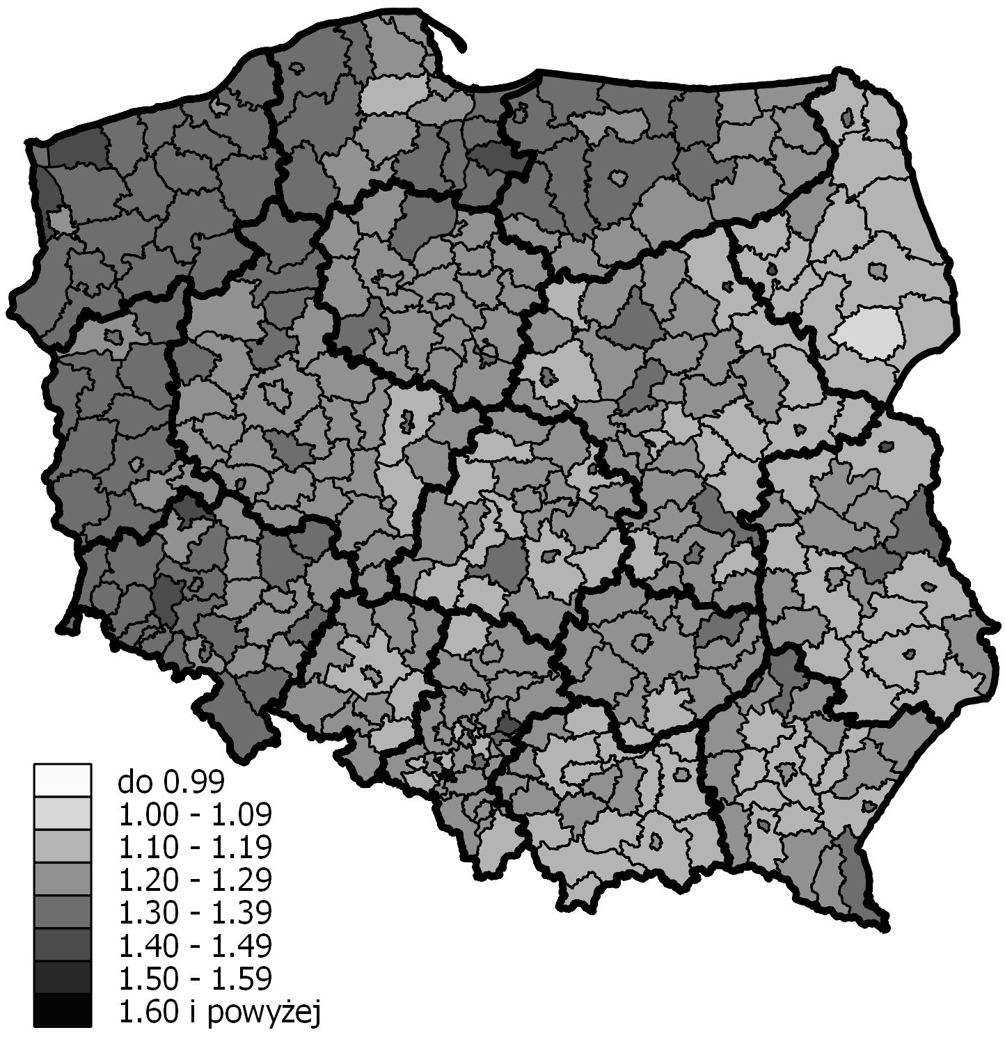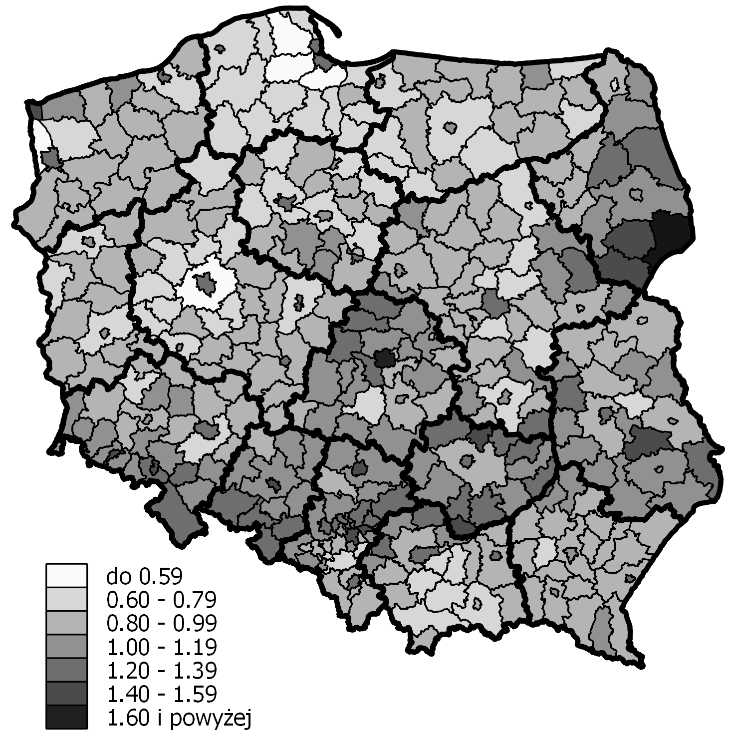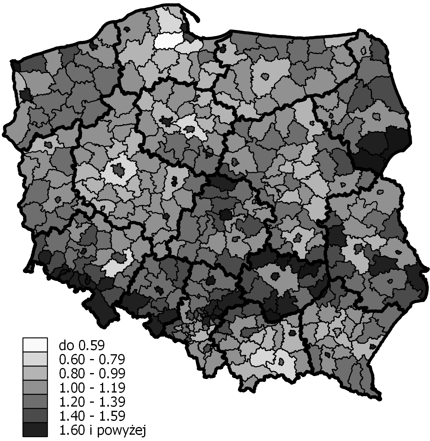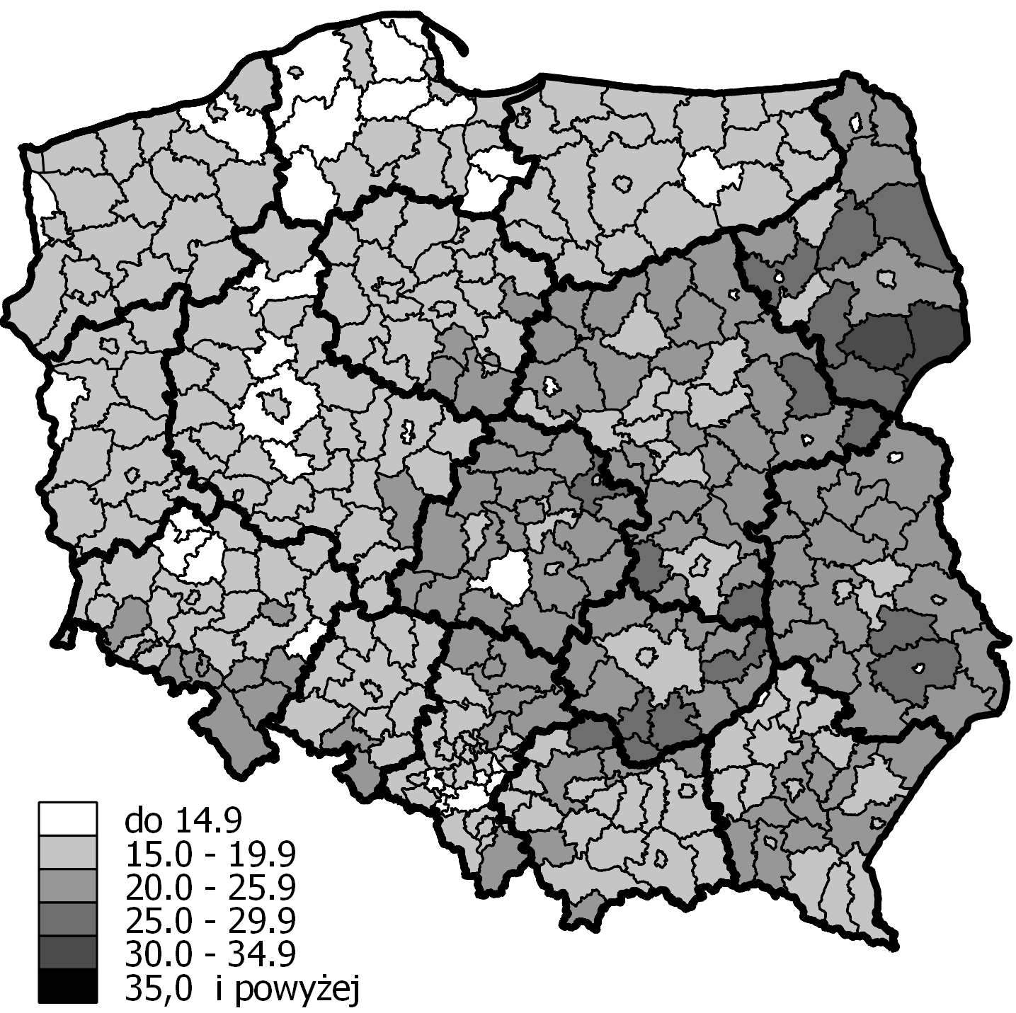 - Ryc. 5 Percentage of people aged 65 and over in poviats in 2014 (Język polski)