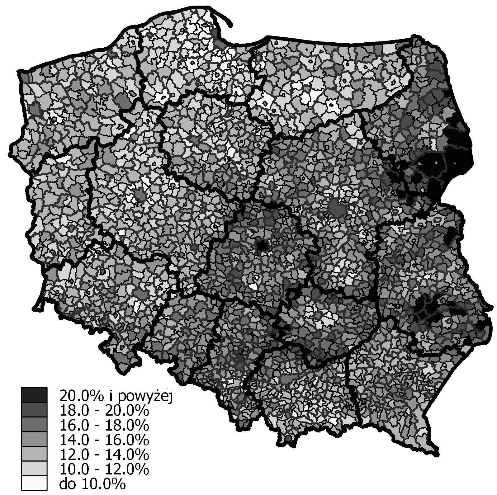 - Ryc. 6 Percentage of people aged 65 and over in gminas in 2014 (Język polski)