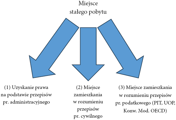 Konkludując, stopniowe odchodzenie od pojęcia miejsca zamieszkania na rzecz miejsca pobytu w świetle przedstawionych faktów i argumentów stanowi trwałą tendencję legislacyjną w całej UE, toteż nie sposób bronić wykładni zmierzającej do zrównania pojęcia miejsca stałego pobytu z miejscem zamieszkania. Obecnie dominuje w Polsce stanowisko pierwsze, tj. uznające nie tylko, że pojęcie „miejsce stałego pobytu” należy rozumieć zgodnie z konotacjami wynikającymi z przepisów prawa administracyjnego, ale wymagające dla zaistnienia „stałego pobytu” w danym miejscu na terytorium RP spełnienia warunków formalnych, takich jak np. (dla niektórych podatników) uzyskanie karty stałego pobytu. Ponowne, po fazie kilkudziesięcioletniej walki o autonomię, zacieśnianie więzi pomiędzy prawem podatkowym i administracyjnym powoli staje się faktem, czego dowodem może być m.in. uchwała składu siedmiu sędziów NSA z dnia 27 marca 2023 r. (sygn. I FPS 2/22, LEX nr 3511189), w której słusznie uznano, że prawo podatkowe nie jest częścią prawa administracyjnego, ale której uzasadnienie wskazuje na niezwykle silne związki pomiędzy tymi gałęziami prawa. Związek taki przejawia się również w relacji art. 2 u.p.s.d. do art. 25 i art. 43 u.o.e.l.