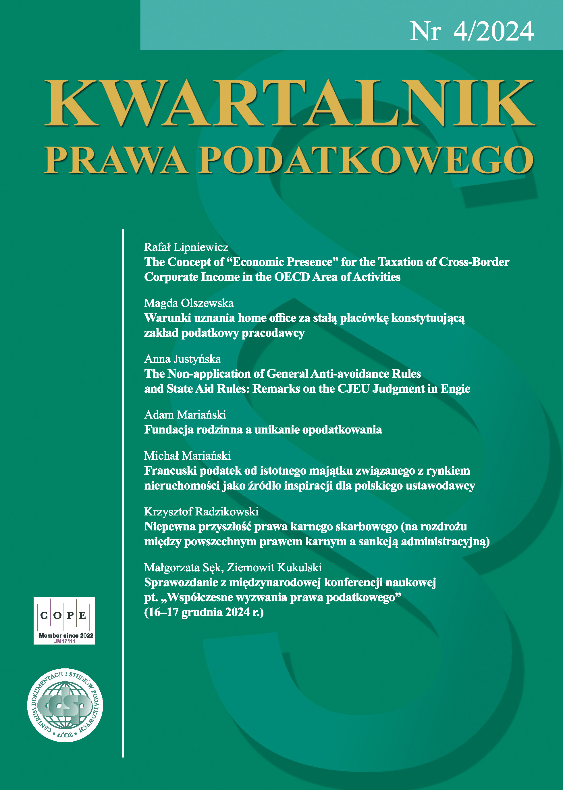 Sęk, M., & Kukulski, Z. (2025). Sprawozdanie z międzynarodowej konferencji naukowej pt. „Współczesne wyzwania prawa podatkowego” (16–17 grudnia 2024 r.). Kwartalnik Prawa Podatkowego, (4), 157–177. https://doi.org/10.18778/1509-877X.2024.04.07