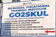 Unlike monolingual ones, bilingual advertisements made information and opportunities universally available and appealed to francophone and anglophone community members alike. In the case of Fig. 4 below, the use of English and French on this two-sided signboard ensured that both linguistic communities were informed of the learning opportunities offered by the school.