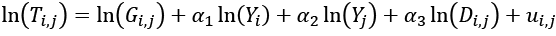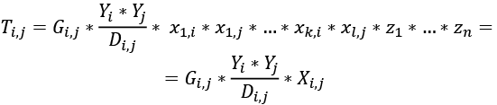 Gi,j – to tzw. stała grawitacyjna – stała dla danego połączenia handlowego,