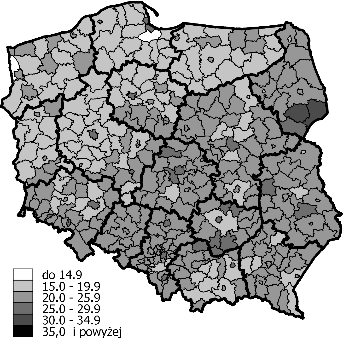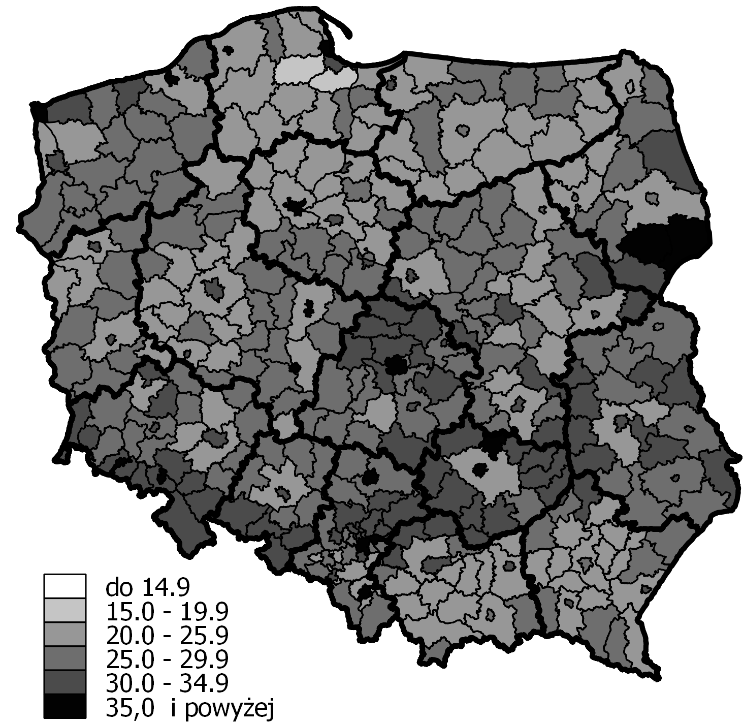 - Ryc. 5 Percentage of people aged 65 and over in poviats in 2014 (Język polski)