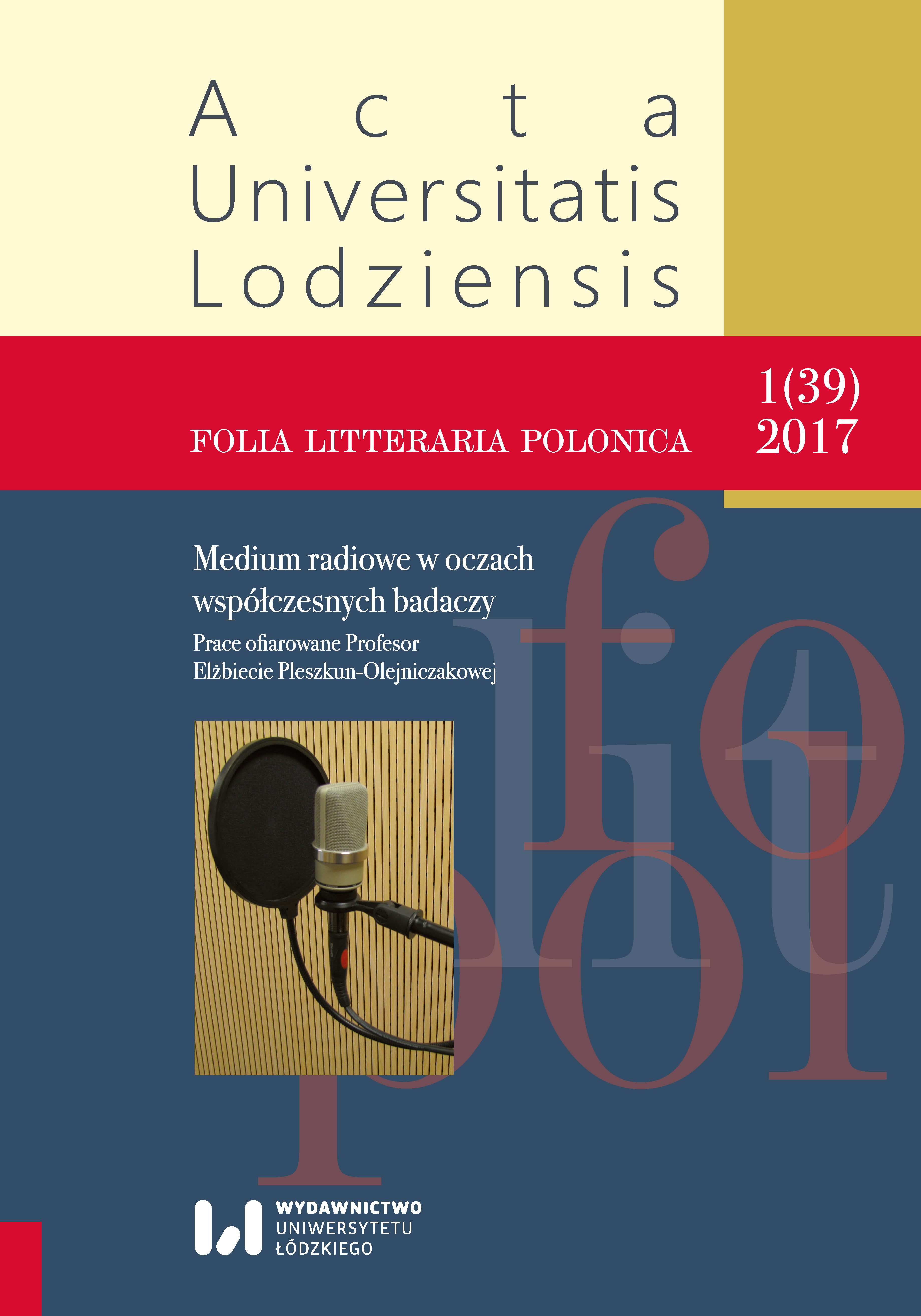 In the article I focus on the works of Tadeusz Różewicz presented on Polish Radio, of which the most numerous are the works of dramatic art adapted for radio, such as: Akt przerywany [The Interrupted Act], Białe małżeństwo [White Wedding], Kartoteka [The Card Index], Kartoteka rozrzucona [The Card Index Scattered], Odejście Głodomora [The Starveling Leaves], Pogrzeb po polsku [Polish funeral], Stara kobieta wysiaduje [The Old Lady Sits Waiting], Śmieszny staruszek [The Funny Old Man], Świadkowie albo nasza mała stabilizacja [The Witnesses, or our little stabilisation], Wyszedł z domu [He Left Home]. Apart from this, Różewicz’s one acters have been broadcast as radio dramas titled Teatr niekonsekwencji [Theatre of Inconsistency]. His poetry have been utilised with varying degrees of success, forming the basis for such poetic programmes as Radio w radiu [Radio on radio], based on a selection of poems from the volumes Uśmiechy [Smiles], or Recykling [Recycling]. A separate group is constituted by programmes forming a kind of tribute to poetic masters: Prus (Rozmowy w Alei Zdrowia) or Staff (Tadeusz Różewicz pisze Staffa). Apart from this, I’m interested in programmes presenting the author’s prose in the collected work Matka odchodzi [Mother Leaves], and also the cycle of five interviews Dialogi poetów. Rozmowy o życiu [Poets’ Dialogue. Conversations about life], being the result of the meeting of Tadeusz Różewicz and Czesław Miłosz in the Teatr Słowacki in Kraków in July 1999. Comparing the radio versions of the texts of these dramas, I arrive at the conclusion that in the majority of cases the directors and engineers of these adapted dramas, falling back on the caveat “based on”, made bold choices, shortening individual scenes or omitting them entirely. In addition, I consider that the creators of these dramas were not attempting to excessively modernise Różewicz’s art, maintaining their climate, their specific rhythm, based on their fragmentary nature, the sequence of scenes as well as the poetics of collage and recycling.