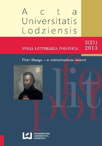 This paper concerns strategies which were applied by Skarga when he was translating the Good Friday oration of Italian Jesuit Stefano Tuccio (delivered before Pope Gregory XIII in 1583). The strategies were divided into four groups (according to translatological and rhetorical key): adiectio, detractio, transmutatio i immutatio. The very brief sermon demanded special tools. Skarga performed an unusual task. He retained spirit of the original and at the same time demonstrated an invention. The preacher had to choose between two strategies of translation – the method of words and the method of a sentence (or a sense). He unambiguously decided for the second one. His fundamental unit of translation was a sentence (its sense, a rhetorical figure, a sound), not a word. Skarga was the translator but primarily he felt he was the rhetor and this (his rhetorical preparation and skill) determined the character of the translation.