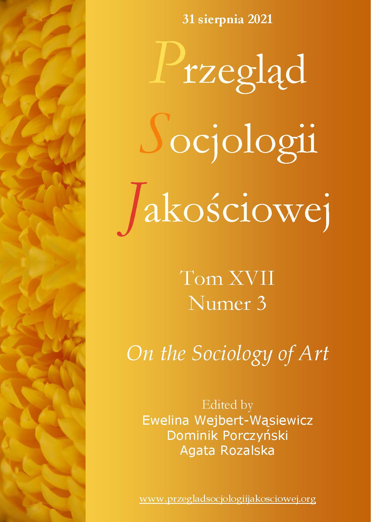Wejbert-Wąsiewicz, E., Porczyński, D., & Rozalska, A. (2021). O współczesnych problemach w socjologii sztuki. Wprowadzenie. Przegląd Socjologii Jakościowej, 17(3), 6–26. https://doi.org/10.18778/1733-8069.17.3.01