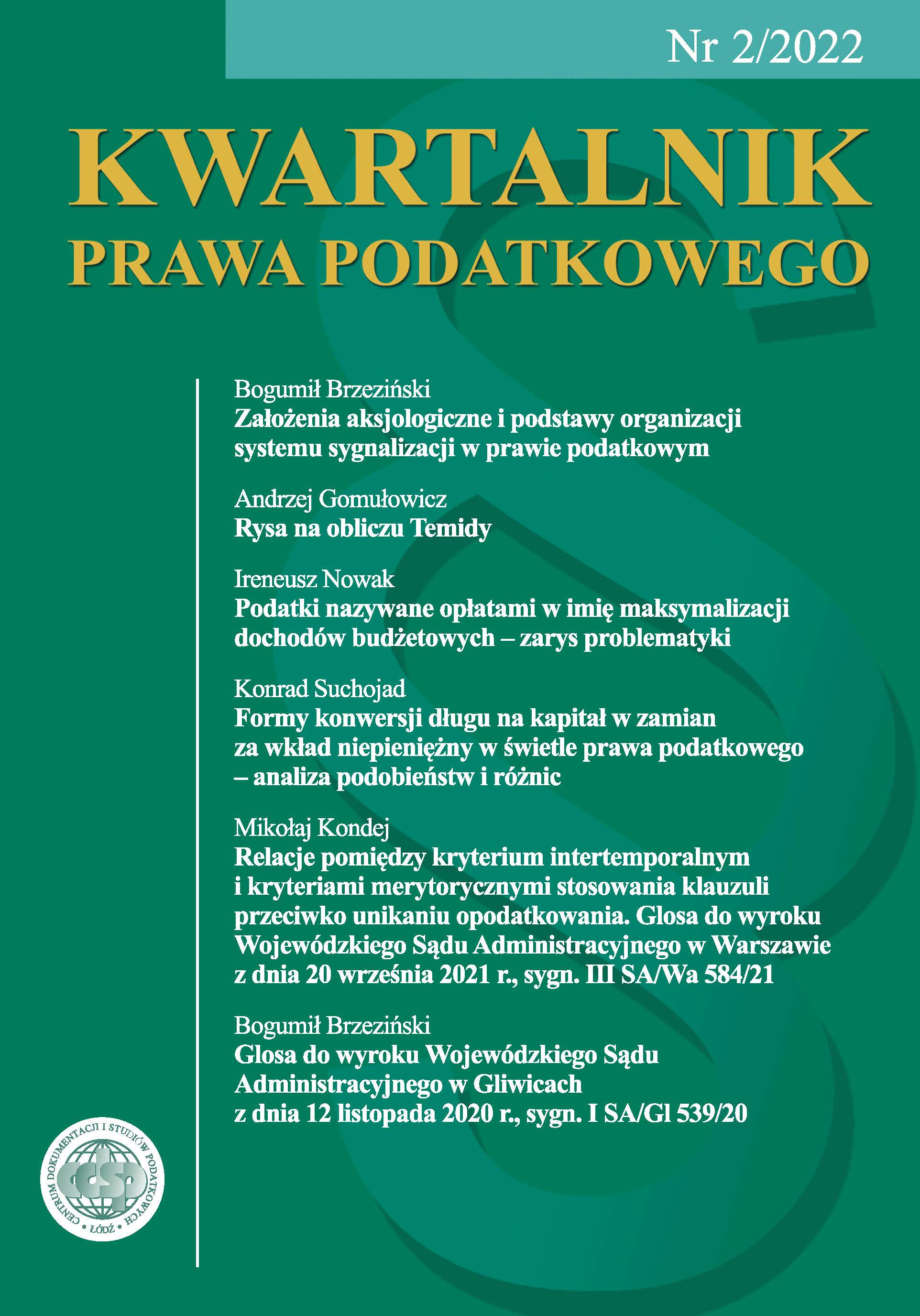 Brzeziński B., Glosa do wyroku Wojewódzkiego Sądu Administracyjnego w Bydgoszczy z dnia 18 sierpnia 2020 r., sygn. I SA/Bd 101/20, „Kwartalnik Prawa Podatkowego” 2021, nr 2.
