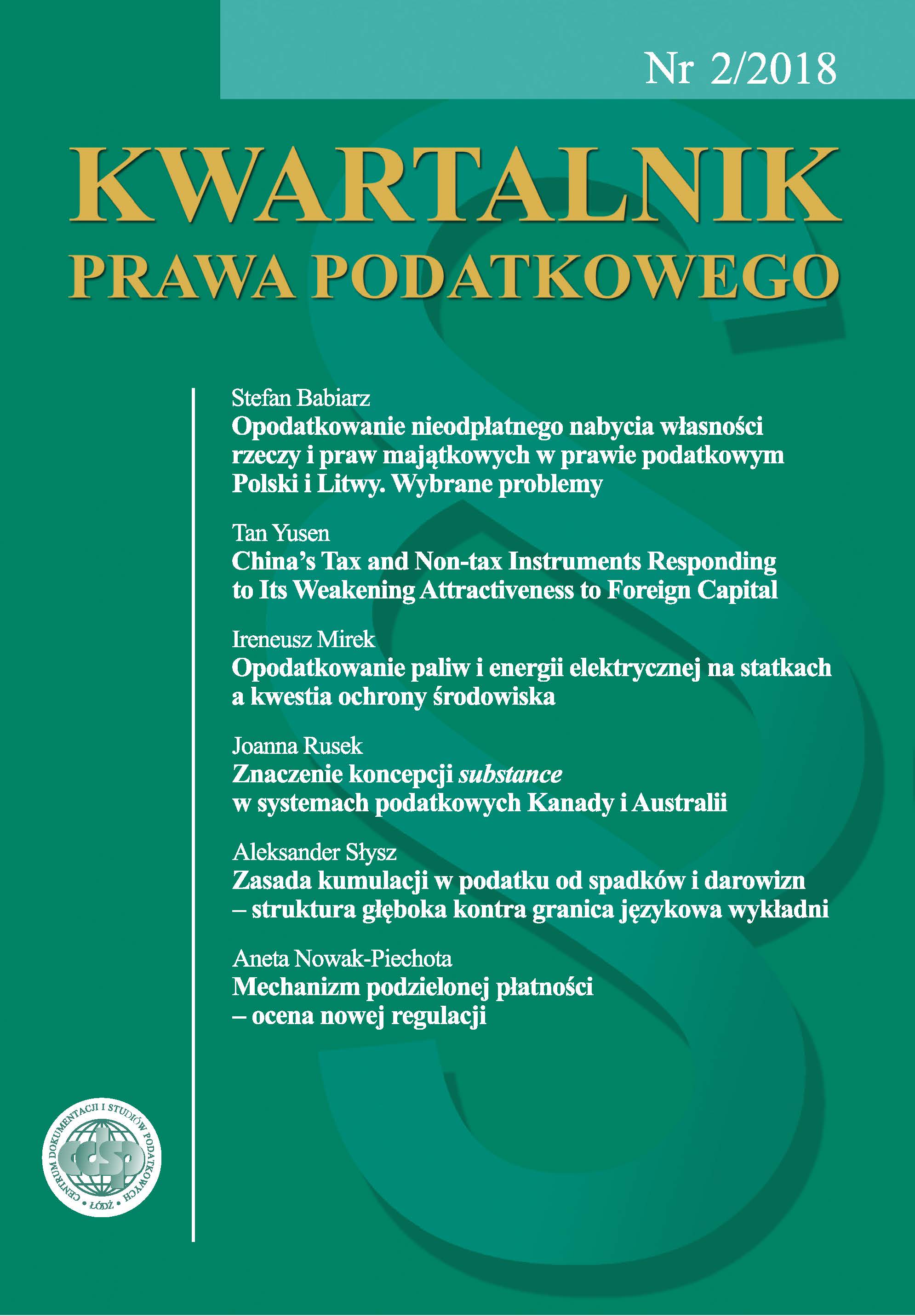 Nita A., Stosunek prawnopodatkowy, Kraków 1999.