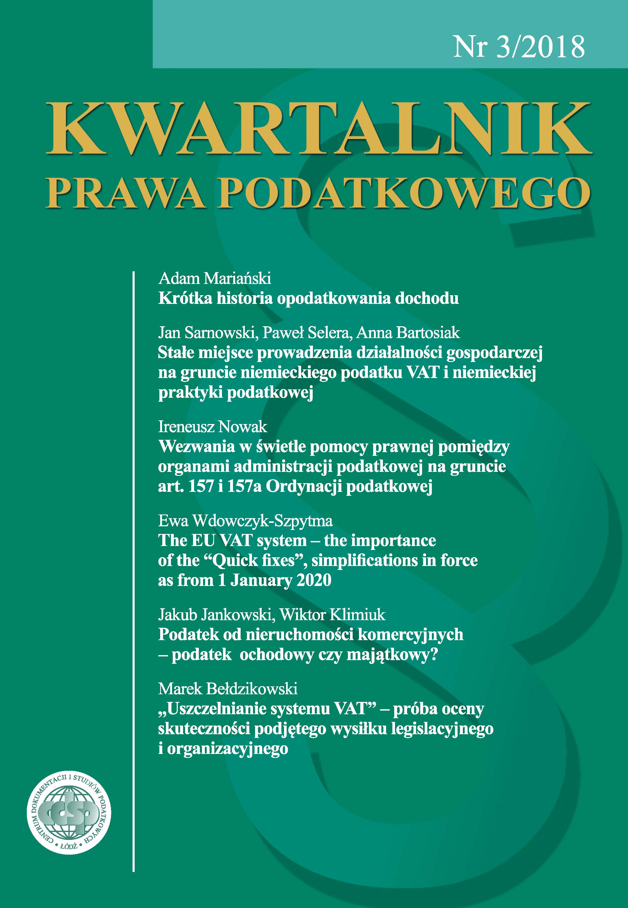 Podatek od nieruchomości komercyjnych został wprowadzony do polskiego systemu podatkowego z dniem 1 stycznia 2018 r. w ramach przepisów ustawy o podatku dochodowym od osób prawnych. W odniesieniu do przedmiotowej konstrukcji prowadzona jest dyskusja co do tego, czy odpowiada ona klasycznemu podatkowi dochodowemu od osób prawnych. W opracowaniu zostają przeanalizowane najważniejsze cechy konstrukcyjne tego podatku. Udziela się również odpowiedzi na temat możliwości funkcjonowania tego typu konstrukcji w polskim systemie podatkowym z perspektywy prawa konstytucyjnego oraz unijnego.