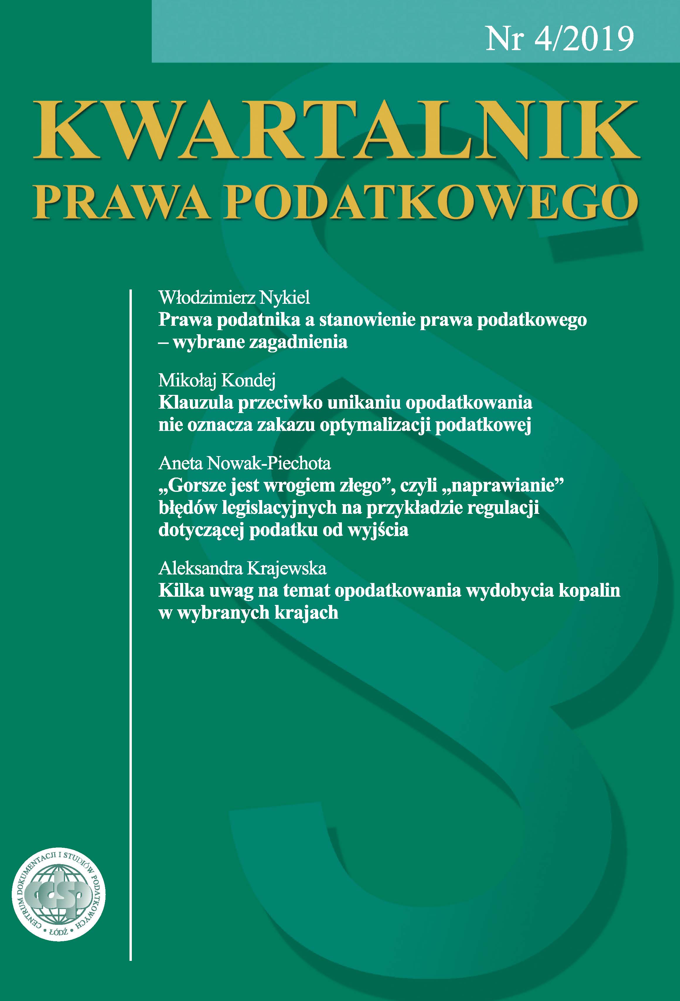 Nykiel W., Nowe przepisy dotyczące klauzuli przeciw unikaniu opodatkowania – wybrane aspekty legislacyjne, [w:] Współczesne problemy prawa podatkowego. Teoria i praktyka. Księga jubileuszowa dedykowana Profesorowi Bogumiłowi Brzezińskiemu, t. 1, Warszawa 2019.